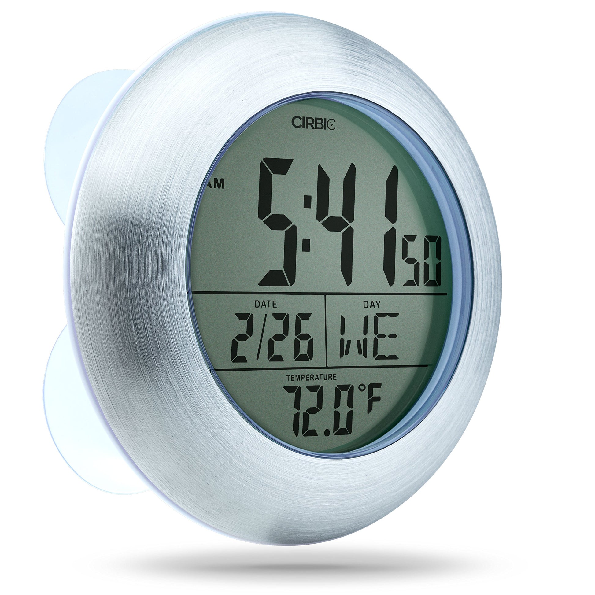 Cirbic Extra Large Shower Clock with Suction Cups, Date and Temperature, Water Resistant Clock for Bathroom